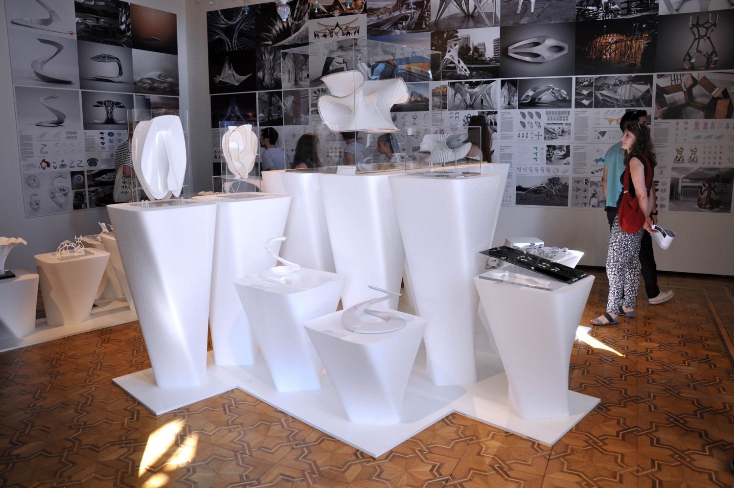Eröffnet wurde die umfangreiche Schau zeitgleich mit der Biennale am Donnerstag. Zu sehen sind Bilder und Modelle, darunter frühe (vom Russischen Suprematismus) inspirierte Zeichnungen bis zu aktuellen Projekten – etwa das Antwerpener Hafengebäude und die «Mathematics Gallery» im Londoner Wissenschaftsmuseum.